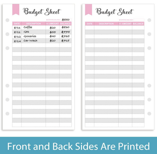 Expense Tracker, 6-Hole Punched Budget Sheets for A6 Planner Binder